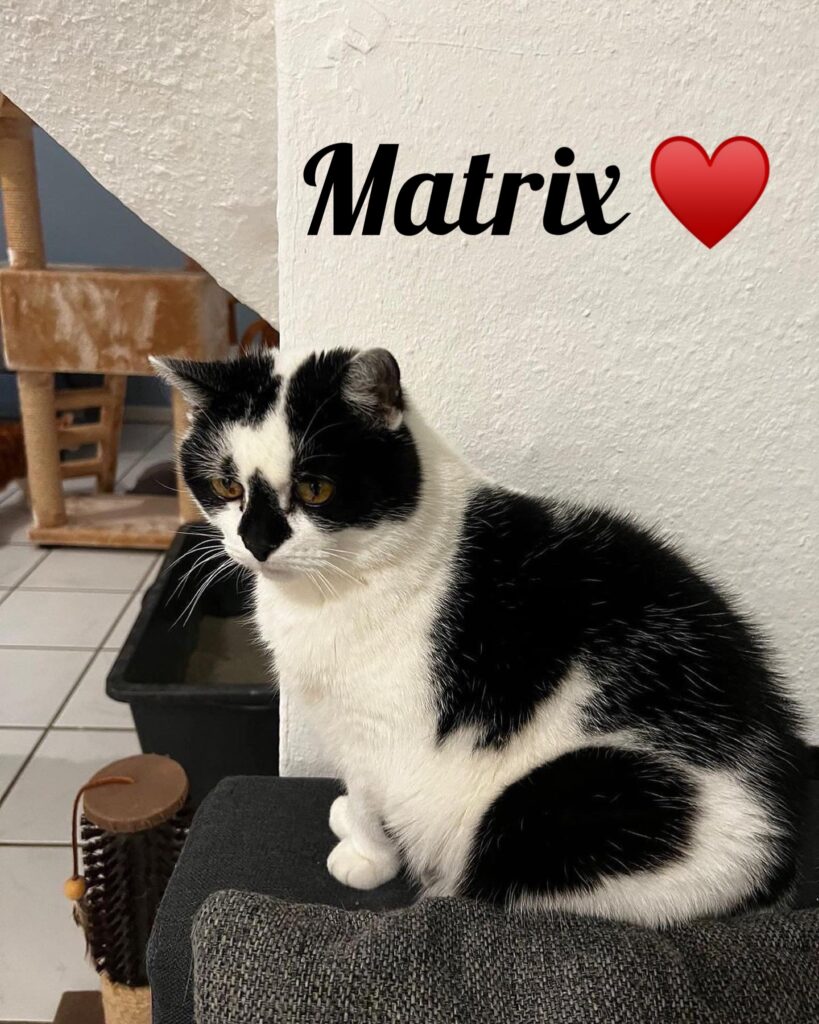 In der Küche haben wir einen neuen Mitbewohner. Ha, Mitbewohner. Eingenistet hat er sich, will nicht mehr ins Zimmer. Frißt unser Futter, geht auf unser Klo…… geht gar nicht. Vicky und ich haben uns beschwert und demonstrativ vor das Klo gepinkelt hat geholfen, nun hat der Stinker ein eigenes bekommen. Ach so, Ihr wollt wissen wer das ist ? Matrix, der dicke Mops. Typisch Kerl, fressen, schlafen und rumstänkern……. aber nicht mit uns!!!!