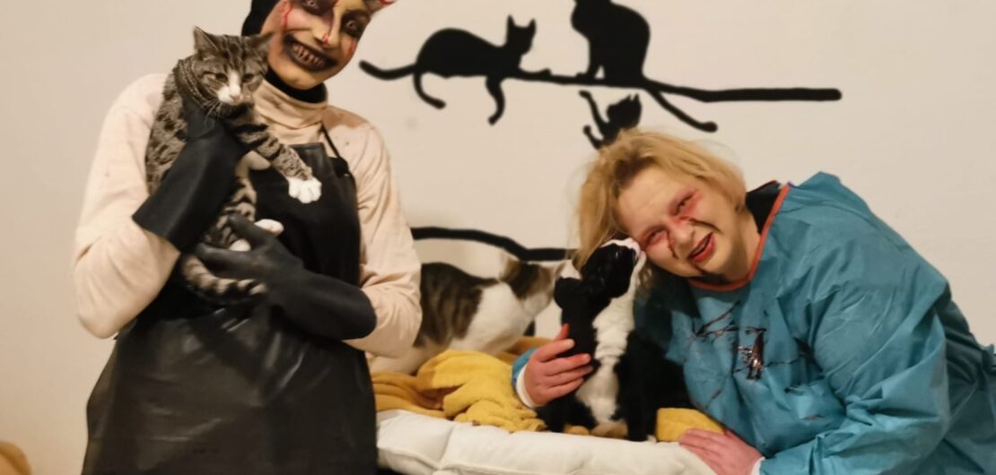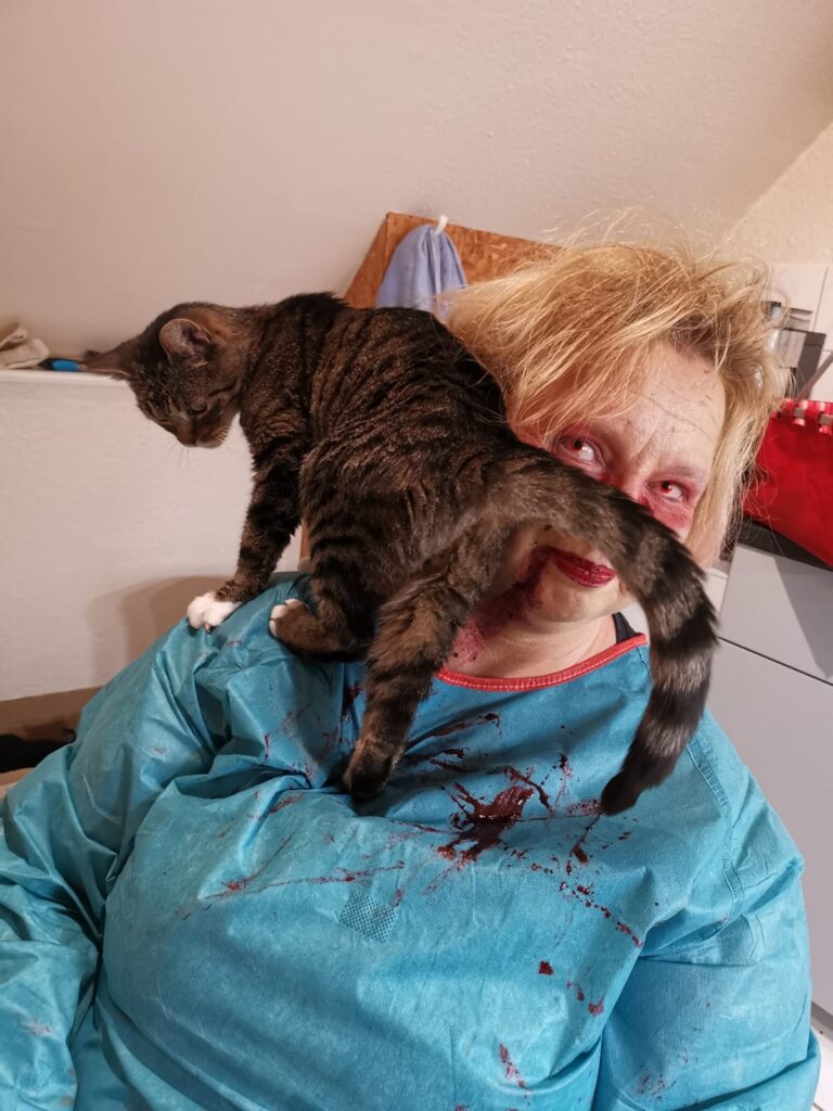 Seit ihr auch so aufgeregt??? Also wir sind es. Unsere Katzen lassen sich aber nicht beeindrucken. Corinna und Mareile gehören nicht nur zur Erschrecker Crew Osnabrück e.V. – nein, sie gehören auch zu uns!!! Da die Tiere sowieso nur das Gute im Menschen beurteilen und nicht das Aussehen, haben sie sich garnicht beeindrucken lassen von dem Fotoshooting mit den Beiden und fordern nur Streicheleinheiten und Spielpausen. Bald dürfen wir Dank der Tierschutzstiftung Netzwerk für Tiere das Tor wieder öffnen und alle wieder einladen zum Horror im Advent. Unsere Freunde von der Erschrecker Crew Osnabrück e.V. bereiten euch zwei unvergessliche Abende und wir kümmern uns um das leibliche Wohl. Also kommt alle am 08. oder 09.12.23 von 18-22 Uhr vorbei und macht gleichzeitig was für den Tierschutz. Denn die Hälfte der Einnahmen kommt dem Tierschutz zugute!!! Ok… Schließlich müssen ja auch unsere Models bezahlt werden!! 😉😂