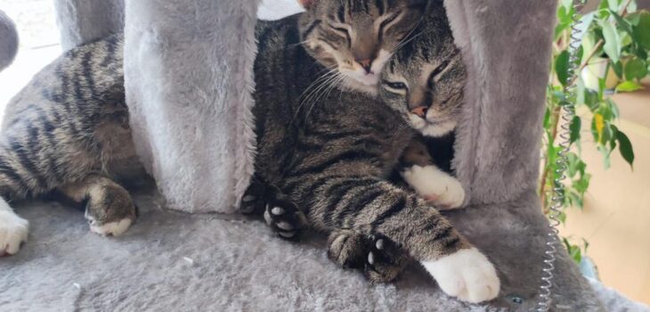 Wir versuchen es ja immer den Menschen wieder nahezulegen. Gerade die schüchternen Tiere entwickeln sich meist zu den Kuschelmonstern. Klar ist das schön, wenn eine Katze auf jemanden zukommt und man denkt, dass die Katze einen ausgesucht hat, aber das ist in den seltensten Fällen so. Meist ist das eine extrem zugängliche Katze, die einfach Menschen mag. In diesem Fall war es sooooo unkompliziert. Die nette Dame hat den schon etwas zutraulichen Feivel kennengelernt und hat die schüchterne Eva gleich auch eine Chance gegeben. Von ihr kam nur: Man muss der Maus Zeit geben und der Rest kommt von alleine. Ehrlich gesagt – fast zu schön, um wahr zu sein. 2 Jungkatzen in einem Traumzuhause mit ganz viel Freiheit ohne gefährliche Straßen. Das was die beiden Jungkatzen dringend brauchten. Kurz danach abgeholt und es hat wirklich nicht lange gedauert!!!!! Beide sind zu Kuschelmonstern geworden und durften nach einer gewissen Zeit jetzt auch die Welt da Draußen erkunden. Schaut euch die beiden jetzt an. So sehen glückliche Tiere aus!! Vielen lieben Dank dafür!!!