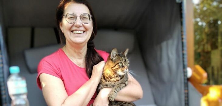 Conny hatte das Glück, unseren Flyer zu entdecken und kam zum allerersten Mal ins Cat Cottage – und wurde prompt mit einem wunderschönen Strandkorb belohnt!
