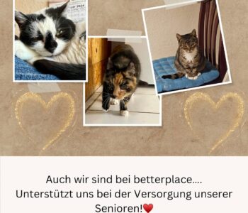 Auch wir sind bei der Spendenplattform betterplace.org. Eine Plattform, wo gemeinnützige Hilfsprojekte vorgestellt und hoffentlich auch unterstützt werden. Wir wenden uns heute an euch mit einem dringenden Spendenaufruf, um die Versorgung von Seniorenkatzen mit lebenswichtigen Medikamenten sicherzustellen. Leider befinden sich diese Katzen in einer Situation, in der eine Vermittlung nicht möglich ist, sei es aufgrund von Krankheiten, hohem Alter oder anderen Umständen. Sie wurden ausgesetzt oder abgegeben.