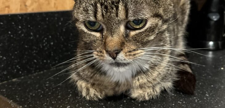 Hopsi wird ca. auf 13 Jahre geschätzt. Er wird meist als Jungkatze eingeschätzt wegen seiner Größe und seiner zierlichen Statur. Klein aber oho… Hopsi kam einst mit seinem Kumpel TomTom von einem Reiterhof zu uns. Sie hatten ein sehr schönes Leben dort, da eine nette Dame, die ihr Pferd auch dort beherbergte, sich um sie rührend kümmerte. Diese Dame wollte aber nun den Reiterstall wechseln und was würde aus diesem beiden Kerlen wohl werden? Die Besitzerin des Reitstalls interessierte sich nicht für diese Katzen und daher musste ein neues Zuhause für die beiden gesucht werden. TomTom ist ein absoluter scheuer Kater und darf in dem neuen Außengehege wohnen. Nicht aber Hopsi. Hopsi ist total menschenbezogen und krabbelt am liebsten in sie hinein. Allerdings nach Lust und Laune. Geht es nicht nach seiner Nase, kommt es auch mal vor, das er sich irgendwo erleichterte. Daher wurde er im Spätsommer für einen kurzen Moment in das Außengehege verbannt. Er freut sich zwar über diese frische Luft, wollte aber als Küchenkatze wieder fungieren. Kaum war ein Mitarbeiter im Außengehe, miaute er um die Wette und ging auf das Katzenklo. Er wollte damit zeigen, dass er wieder lieb ist und nicht überall seine Spur hinterlässt. Er durfte zum Herbst wieder rein. Es ist viel besser geworden. Allerdings – Ausnahmen bestätigen die Regeln. 😉 Er gehört zu uns und liebt es auch in unserer Nähe zu sein. Eine Küche ohne Hopsi kann man sich auch kaum mehr vorstellen.